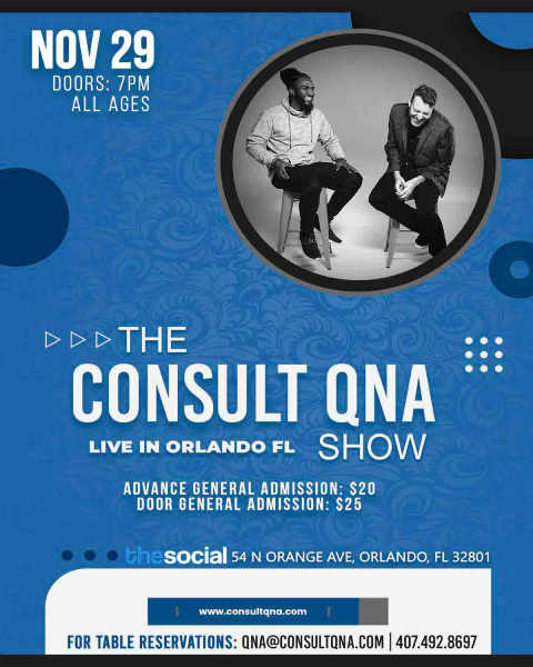 Don't miss this opportunity to be part of "The Consult QnA Show" live and in person! Grab your tickets now for an evening of musical enlightenment, laughter, and inspiration.
